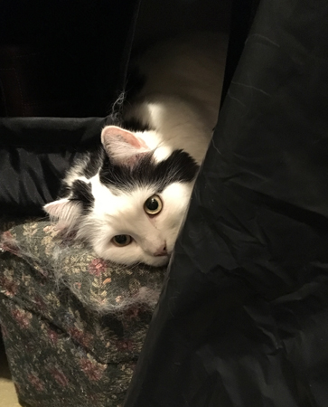 Citrus på sitt favoritställe sypuffen i klädkammaren,