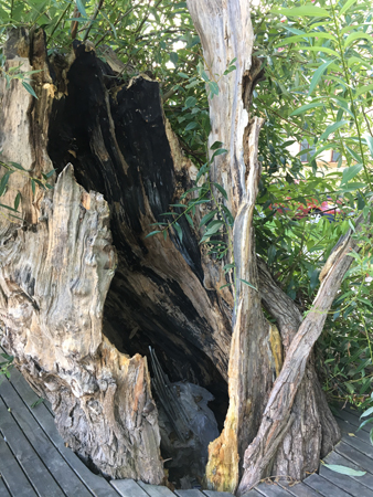 Ett träd med ett hål i vid ån.