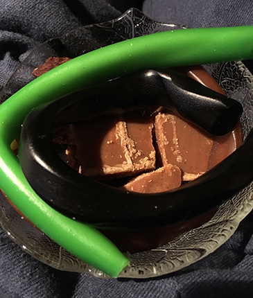 Jag gjorde iordning var sin godisskål med remmar och fudge åt oss igår kväll.