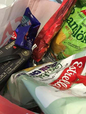 Chips, nötter och vin passar bra på ett AW.
