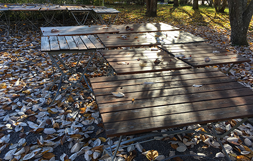 Bord bland höstlöv Café Victoria 18 okt 2018