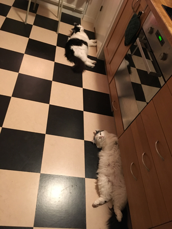 De utsvultna katterna, som visst aldrig får mat, låg i kö.