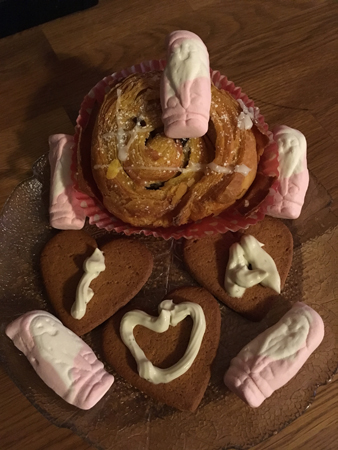 För-adventsfika. Syns meddelandet på pepparkakorna?