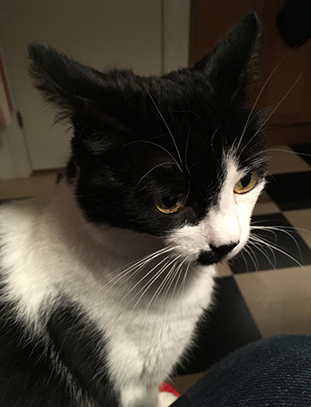 Mini Flufföra ville sitta nära i morse. Alla tre katterna är mycket sällskapssjuka just nu.