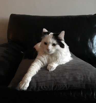 När skrivbordsstolen är upptagen… Citrus på kudden i soffan.