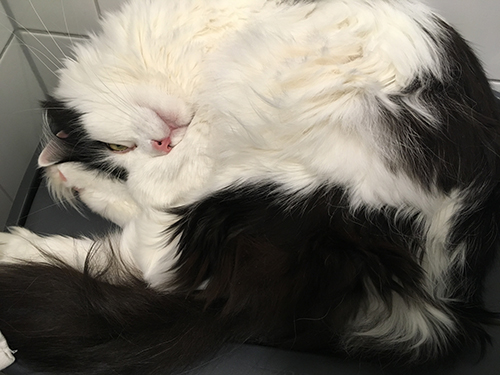 Lucifer sover på sin nya favoritplats på tvättkorgen.