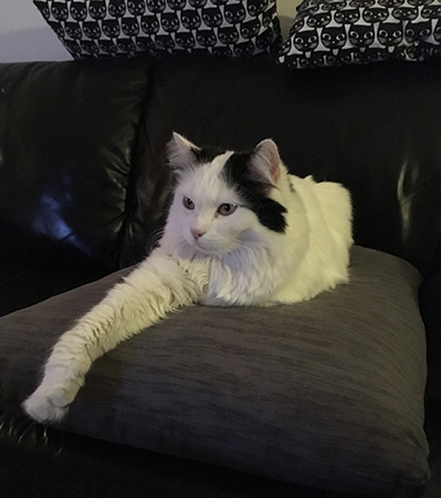 Citrus har börjat ligga på kudden på soffan i vardagsrummet.