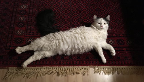…och Citrus sträckte ut sig på mattan i Mellanrummet. Kolla den utspärrade baktassen. Vilken sötnöt!