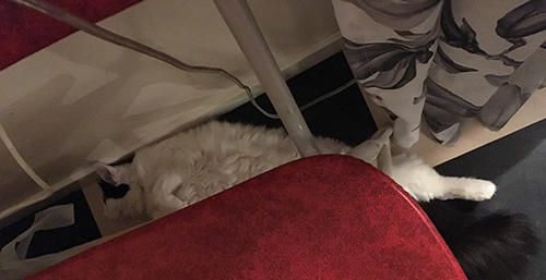 Citrus låg och åmade sig bakom kökssoffan när vi hörde ett skrik.