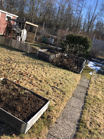 Delar av trädgården på baksidan.