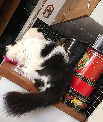 Lucifer o Citrus på köksbänken