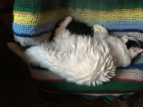 Citrus sträckte ut sig, så jag fick putta upp henne lite för att hon inte skulle trilla ur skribordsstolen.