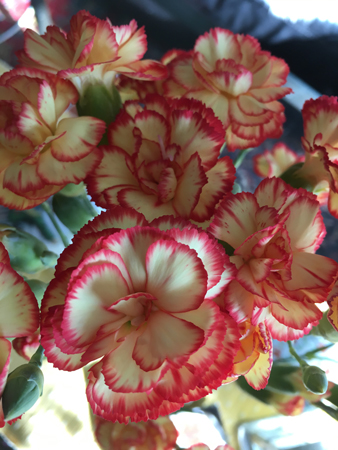 Anna fick vackra nejlikor av sin snälla mamma och hennes L på sin födelsedag.