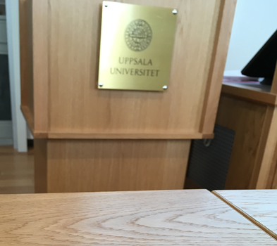 I den här talarstolen i sal XI i Universitetshuset pratade folk om språkplicy i eftermiddags.