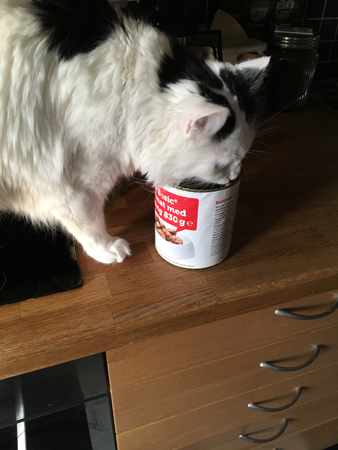 Nån (Citrus) var jättehungrig och åt direkt ur burken.