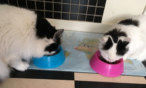 Lucifer och Citrus äter kvällsmat.