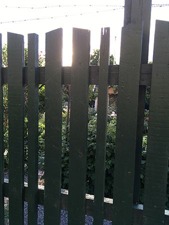 Staket framför trädgårdsföreningen Violas stugor