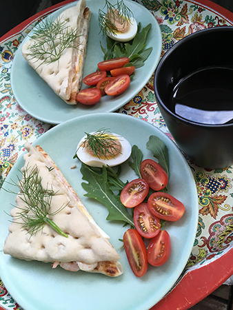 Anna hade fixat fin kvällsmat med bland annat vår egen dill och ruccola.