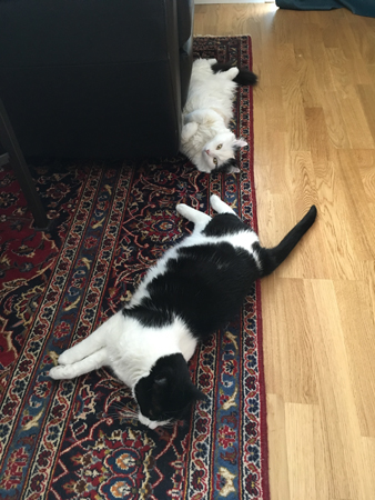 Tjejerna låg på rad när jag kom hem, Mini närmast kameran, Citrus vid bästefåtöljen.