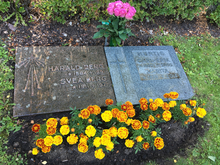 Graven med rosa rosor och tagetes