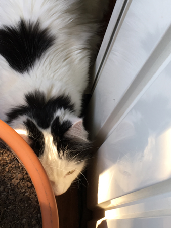 Citrus bakom yuccapalmen Ingrid på balkongen