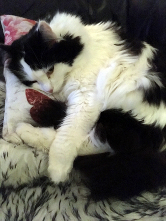 Lucifer låg på kudden på soffan i vardagsrummet.