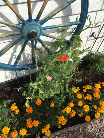 Annas luktärt har börjat blomma. En vallmo har smugit sig in också.