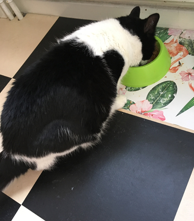 Äter fint ur sin skål.