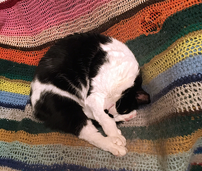 Mini gillar skrivbordsstolen och den virkade, håriga filten bäst.