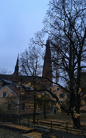 Domkyrkotornen seddan fr St Olofsbron 21 okt 2019 morgon