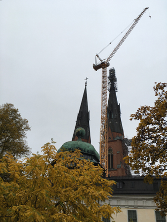 Domkyrkotornen i kväll, sedda från universitetsparken.