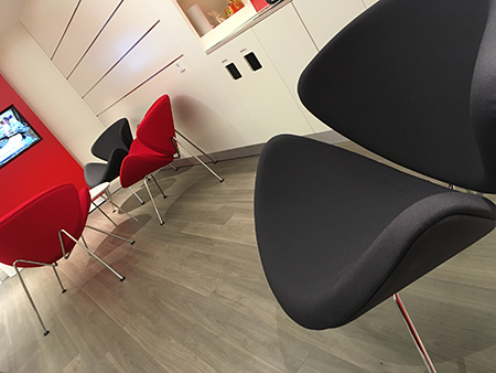 Lustiga stolar, men ganska bekväma. Dessutom följer färgerna Toyotas grafiska profil.
