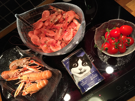 Kvällsmat på fredagen – fast inte påsen med kattmat, förstås.