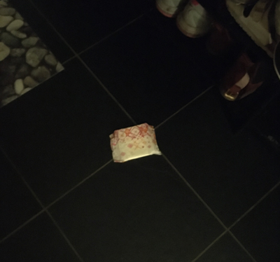 Citrus snodde åt sig en binda och lekte med på hallgolvet.