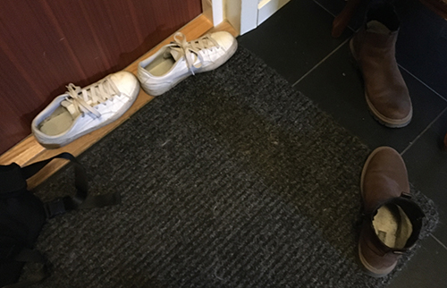 Skor på hallmattan