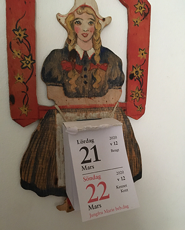Datumflicka visar 21 o 22 mars 2020