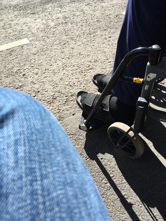 En stund solpaus i rullstolsprommen.