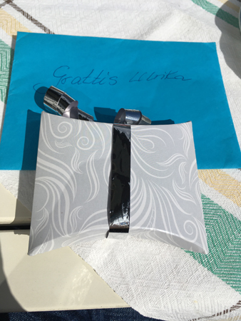 Blått kuvert och paket