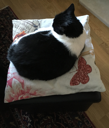 …medan mamma Mini övervakade dem lite från sidan, på kudden på min fotpall.