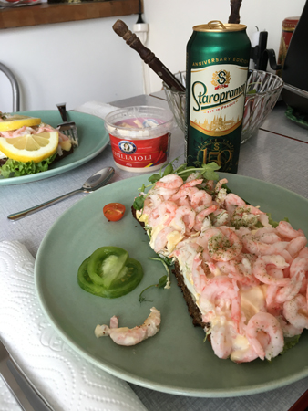 Räkmacka och Staropramen