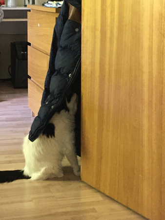 Busan och jägaren Citrus försöker gömma sig i Gymnasistens vinterjacka.