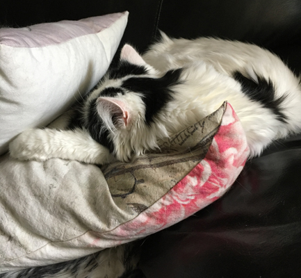 Citrus sover på en soffkudde