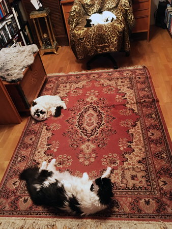 Bokrummet är inte bara arbetsrum för mig när jag jobbar hemifrån. Det är visst sovrum för familjen Katt också.