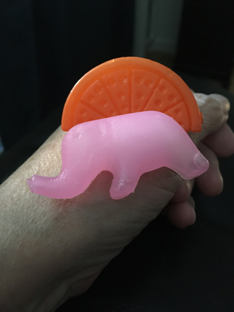 En apelsinklyfta och en rosa elefant stoppade det onda på tummen.