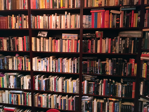 Del av bokväggen mot köket