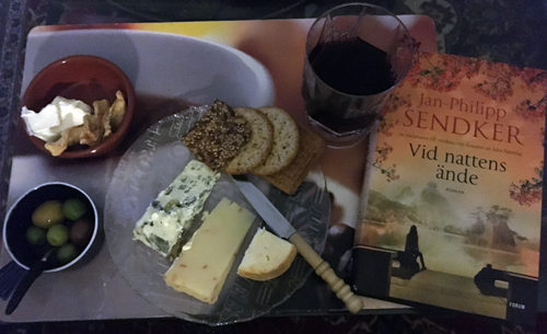 Osttallrik vin och boken Vid nattens ände