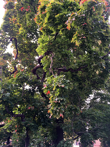 Träd med enstaka röda löv