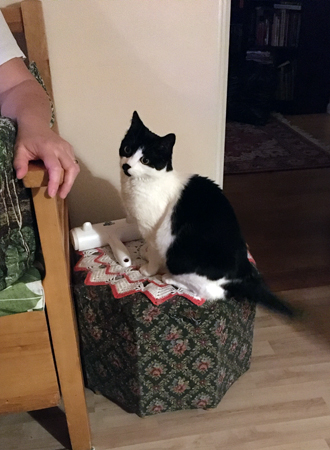 Mamma Mini på sypuffen kollar om det finns nåt gott på bordet.