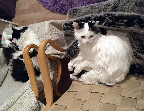 Tisslingarna, Lucifer till vänster och Citrus till höger, softade hela kvällen igår i Annas Bruno Mathssonfåtöljer.