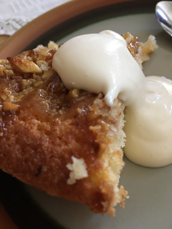 Annas snälla mamma bjöd på toscaäppelkaka med vaniljsås.